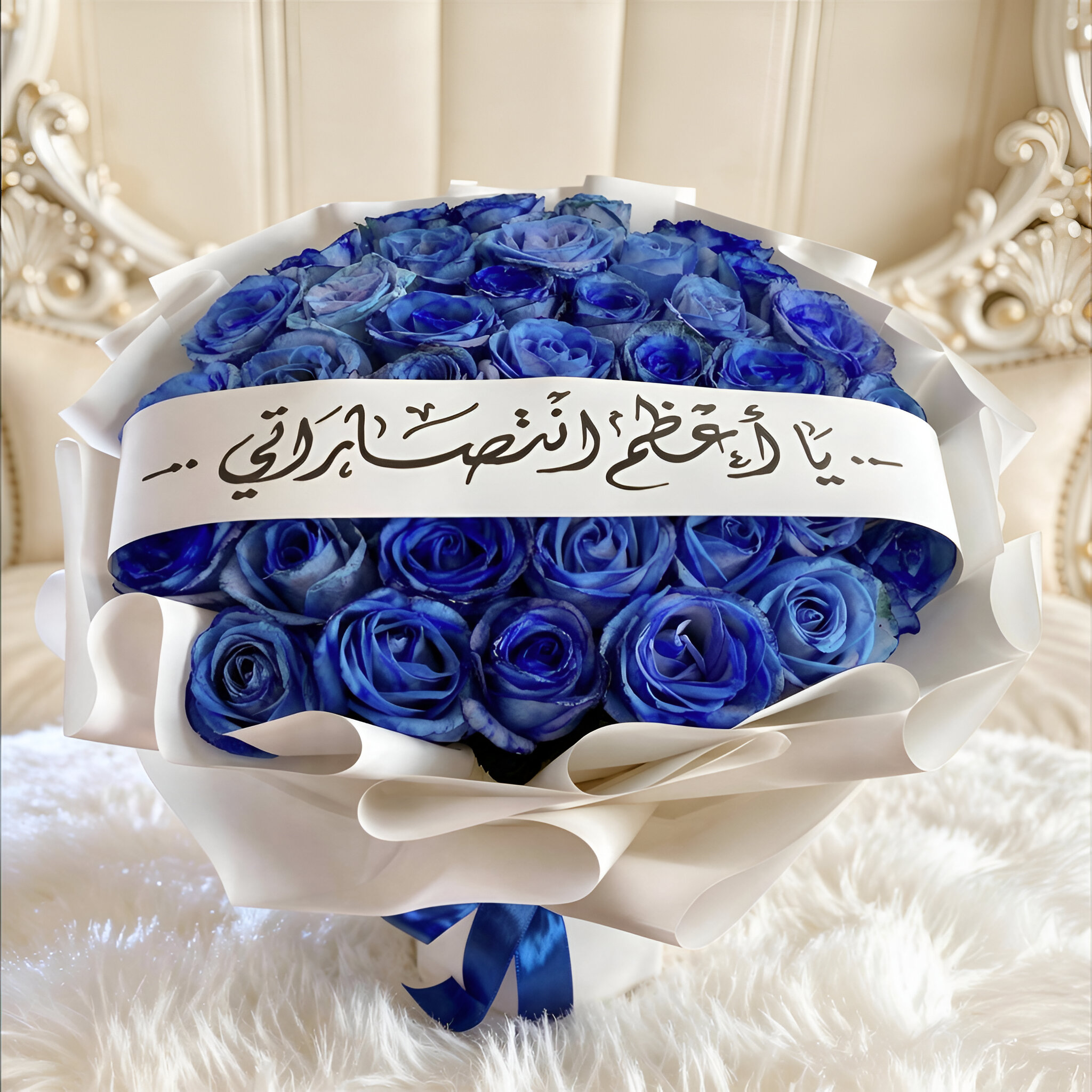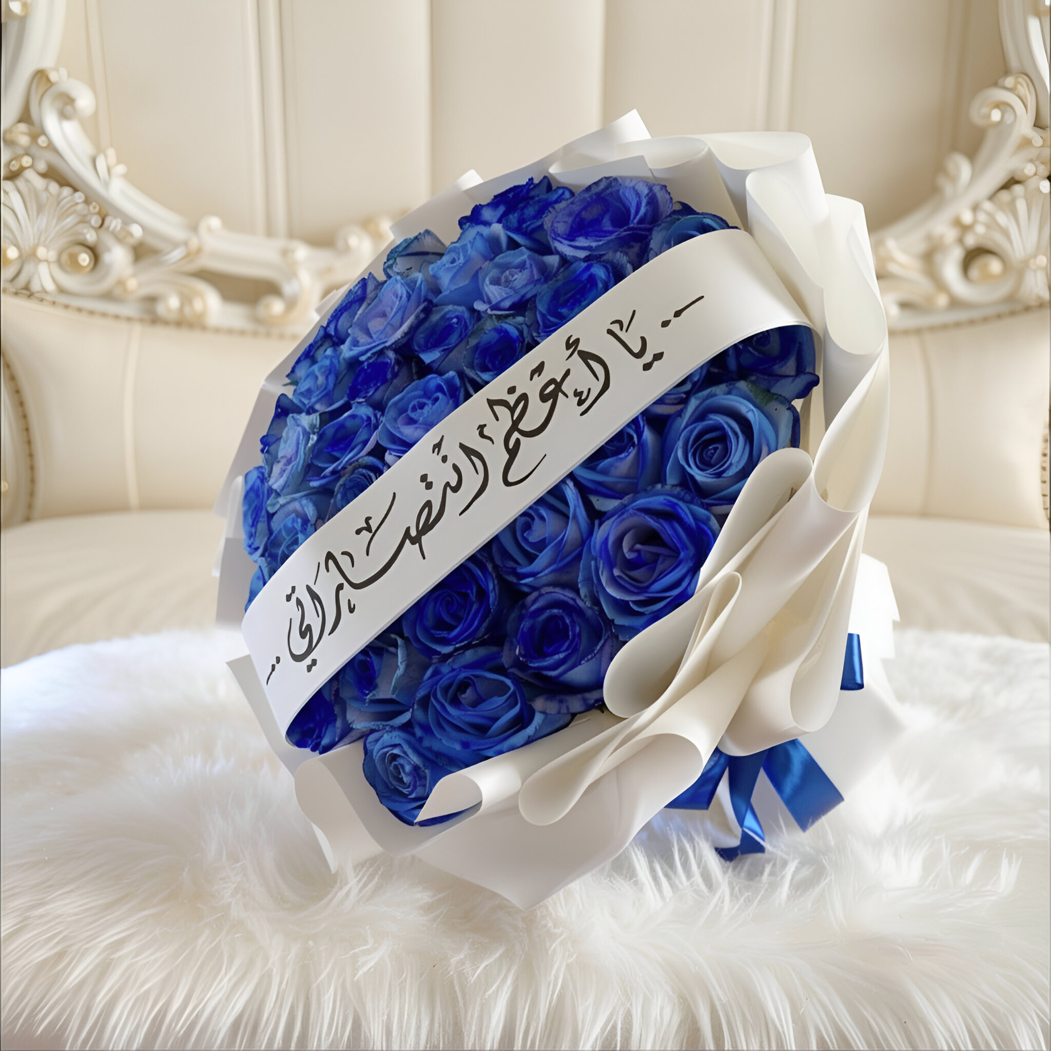 باقة ورد أزرق فاخرة تنبض بالأناقة والتميز، مختارة بعناية لتخطف الأنظار من اللحظة الأولى.