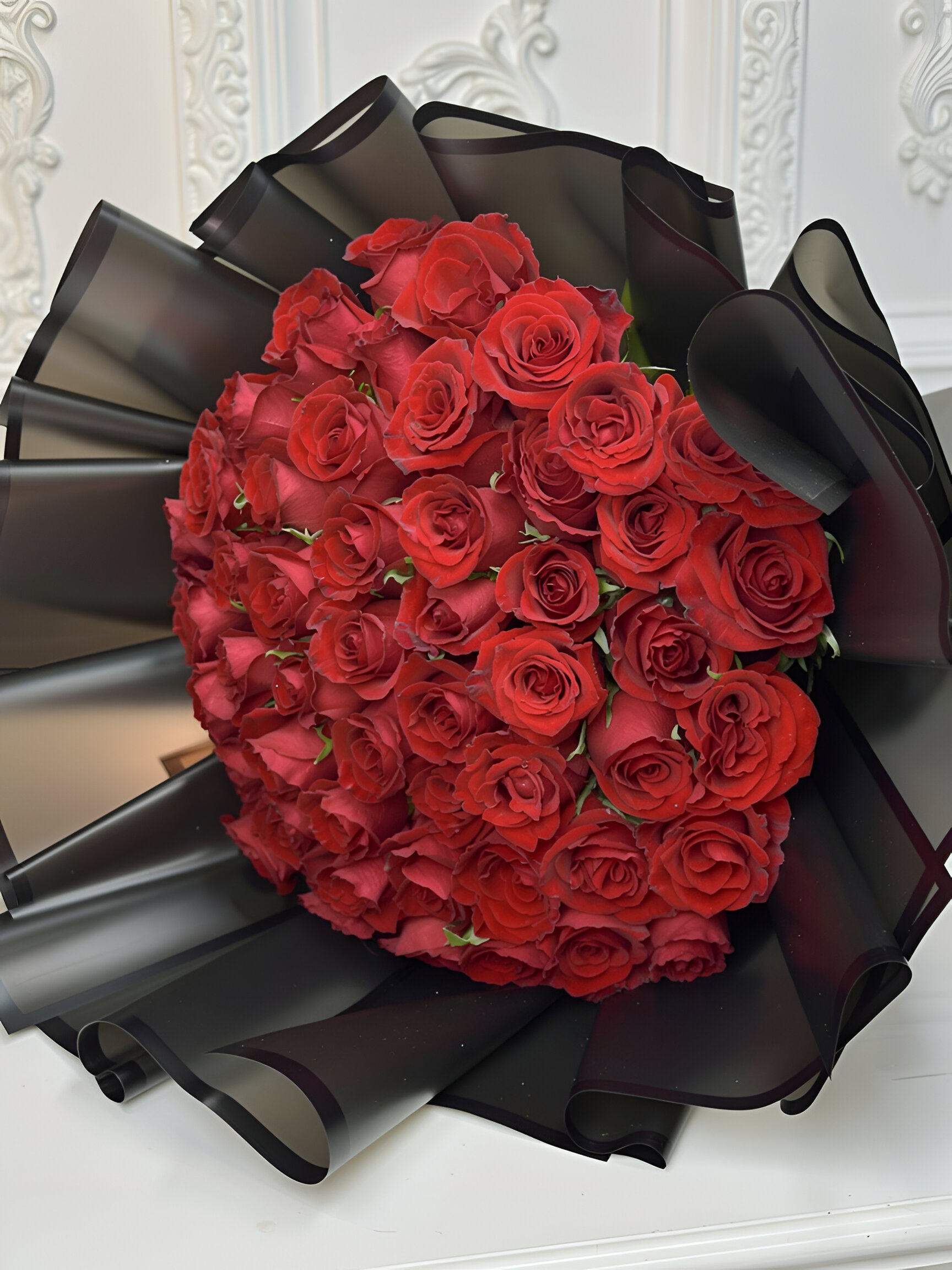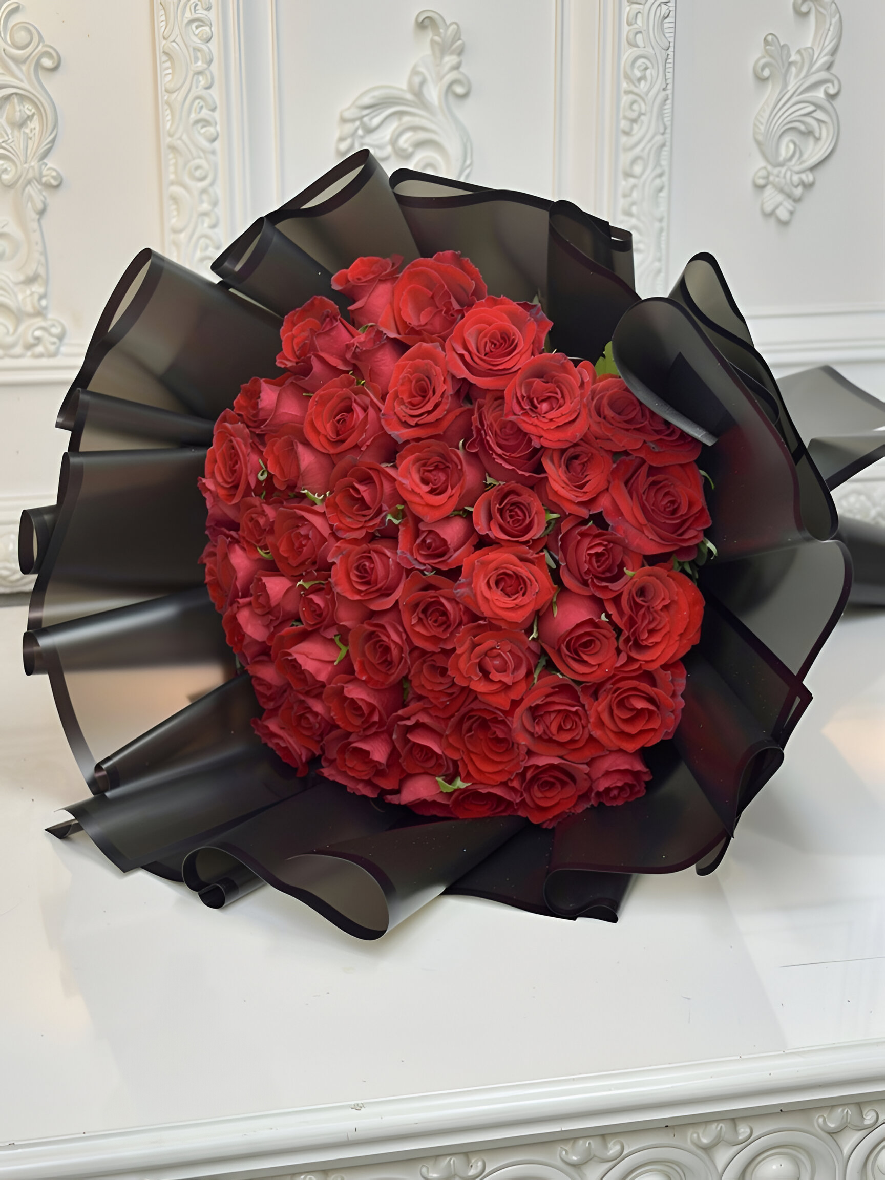 باقة ورد أحمر فاخرة تعبّر عن الحب والشغف بأجمل صورة ممكنة.